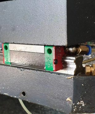 當手動式按壓油泵出現滑塊漏油的情況,首先考慮是否是按壓次數太多,當按壓次數太多出油量增大,機頭導軌的油大量外滲至機座底部導軌,就會出現上圖所示情況.