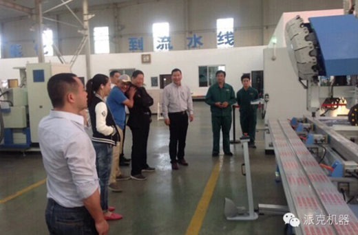 繼正典門窗系統與派克達成戰略合作關系后,2014年10月24日下午,廣東貝克洛黃總、上海奧為王總,河北斯特龍范總、河北德誠門窗劉總、山東合生五金唐總一行在派克機器董事長楊勇的陪同下,參觀考察了派克門窗幕墻系統設備產業園。