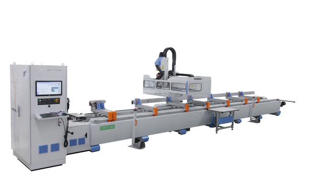 此款鋁型材加工中心采用意大利高速電主軸可實現+90度到-90度的任意角加工,采用半干式刀具冷卻系統,真正實現四軸聯動及插補,亦可加工圓形材料。適用各種工業鋁型材及幕墻鋁型材的安裝孔、流水槽、鎖孔、形孔、端銑及攻絲等加工工序。采用高品質的工業專用計算機控制系統,具有良好的用戶操作界面、圖形編程及加工跟蹤界面,真正實現所見即所得。
